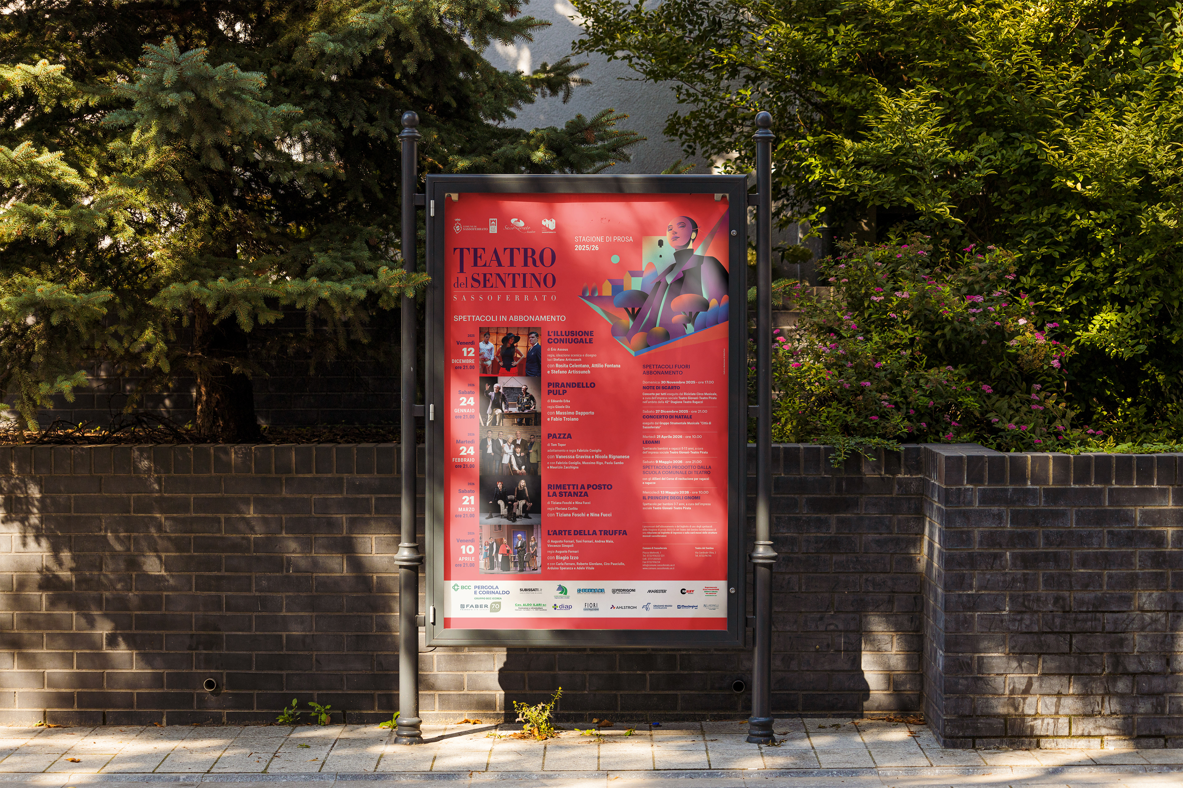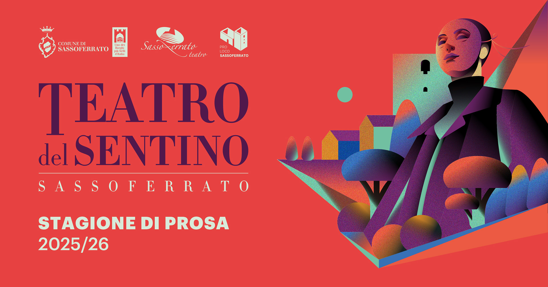 Illustration and graphic design created for theatre season 2025/26 at the theatre Teatro del Sentino